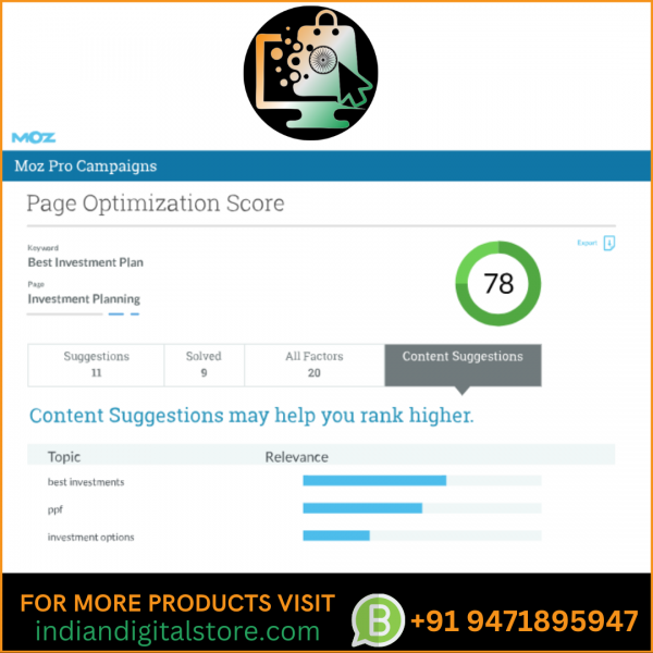 Moz Pro Premium Account is the best among any other SEO tools for checking your website domain authority, page authority, Ranking keywords, spam score Domain ratings, etc. It helps you as an analyzer to research about other SEO to boost your website.